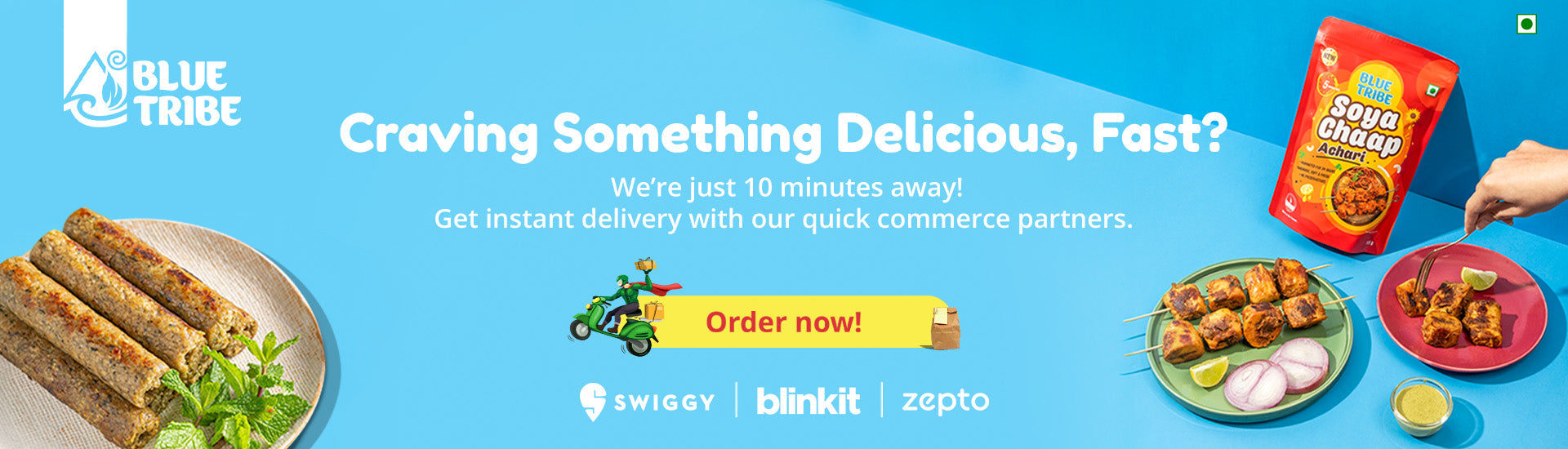 Now get instant delivery to your doorstep in just a matter of minutes—The perfect answer to all your last-minute plans! Just order with one of our instant delivery partners and indulge in your favorite Blue Tribe Plant-Based Treats in no time.